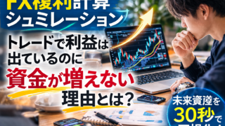 FX複利計算シュミレーションを使うと、トレードで利益は出ているのに資金が増えない理由がはっきり見えてきます。FXで「勝っているのに資産が増えない」と感じた経験はありませんか。その原因の多くは、トレードの技術ではなく資金管理や複利運用の考え方...