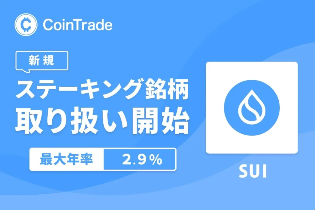 2026年2月4日、マーキュリーが提供する暗号資産ステーキングサービス 「Coin Trade Stake(コイントレードステーク)」 で、新たに暗号資産 SUI(スイ) のステーキング取り扱いがスタートしました。これは、CoinTrade全体のサービス拡充を意味し、ユーザーにとってステーキングの選択肢がさらに増えた重要なニュースです。