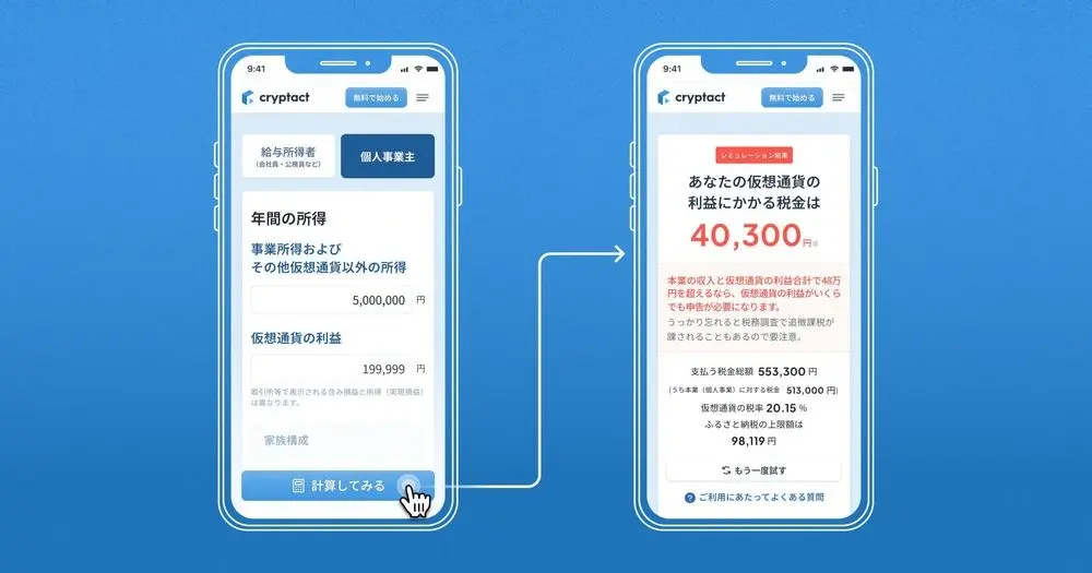 仮想通貨の税金、もう迷わない!「クリプタクト」の無料税金シミュレーションで安心&お得に