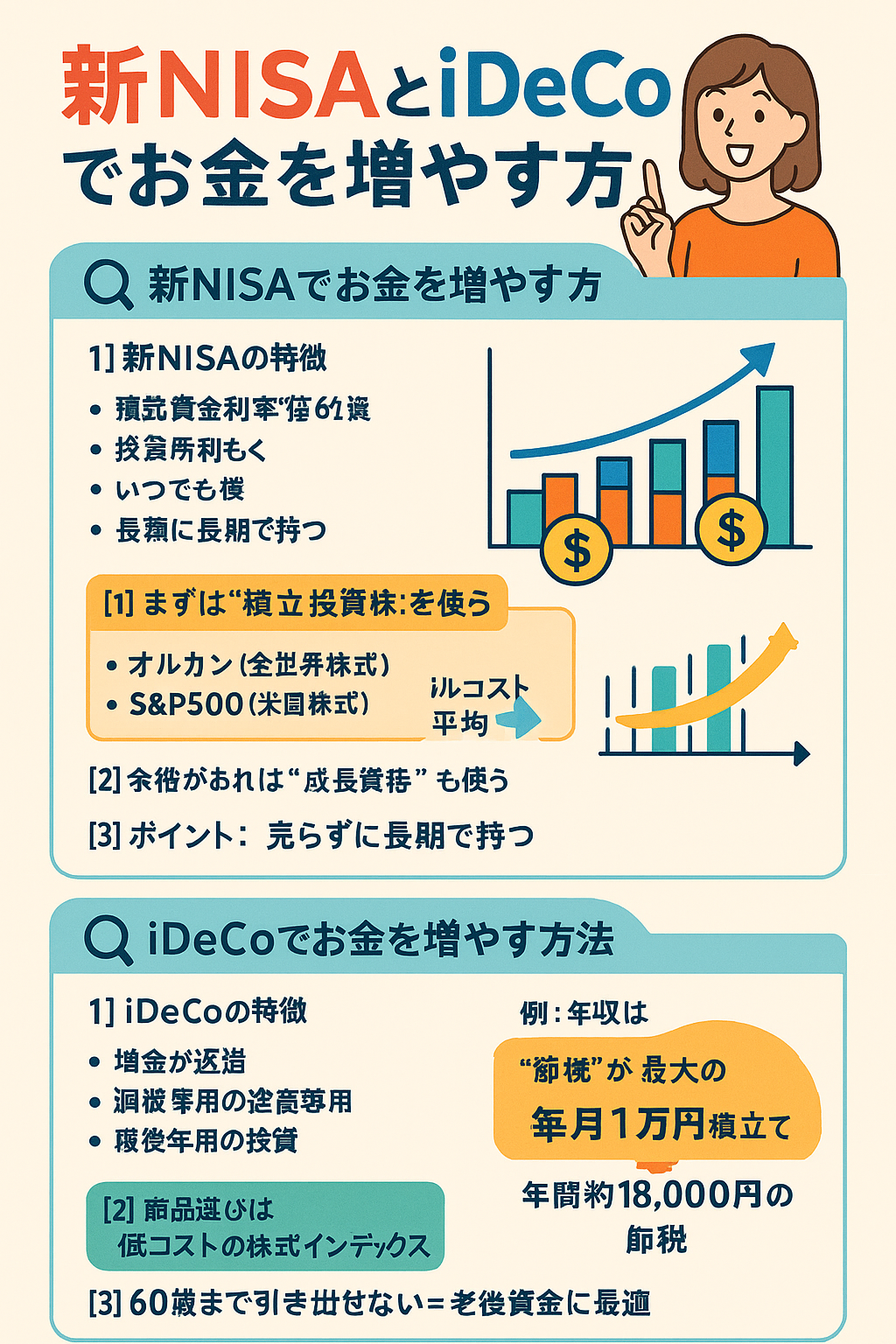 新NISA(ニーサ)とiDeCo(イデコ)は、どちらも“税金の優遇を受けながら資産運用ができる制度”です。うまく使うことで、長期的にお金を増やしやすくなります。