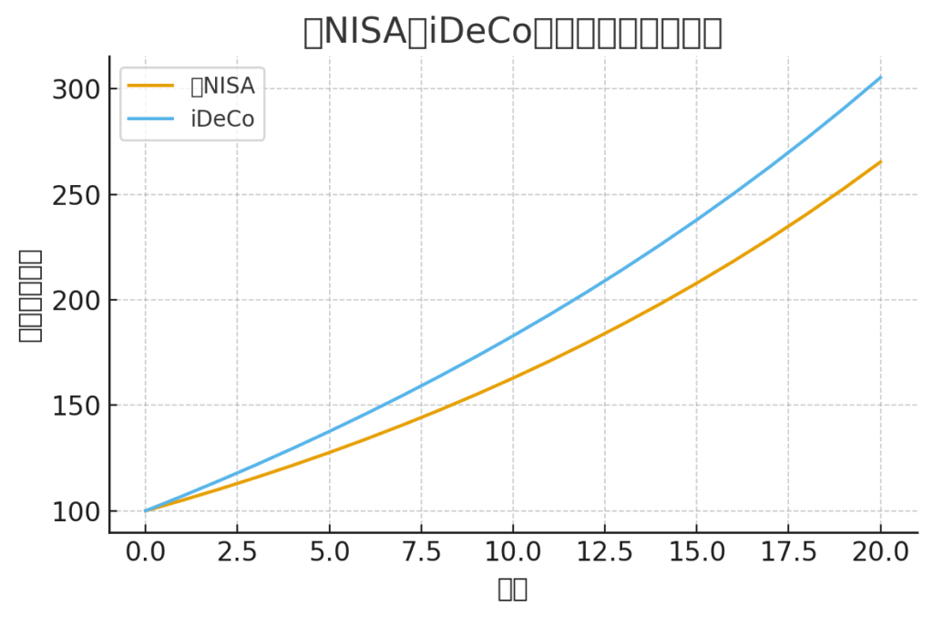 - 新NISAとiDeCoの違いや“長く続けるほど増えやすい”点がひと目でわかる