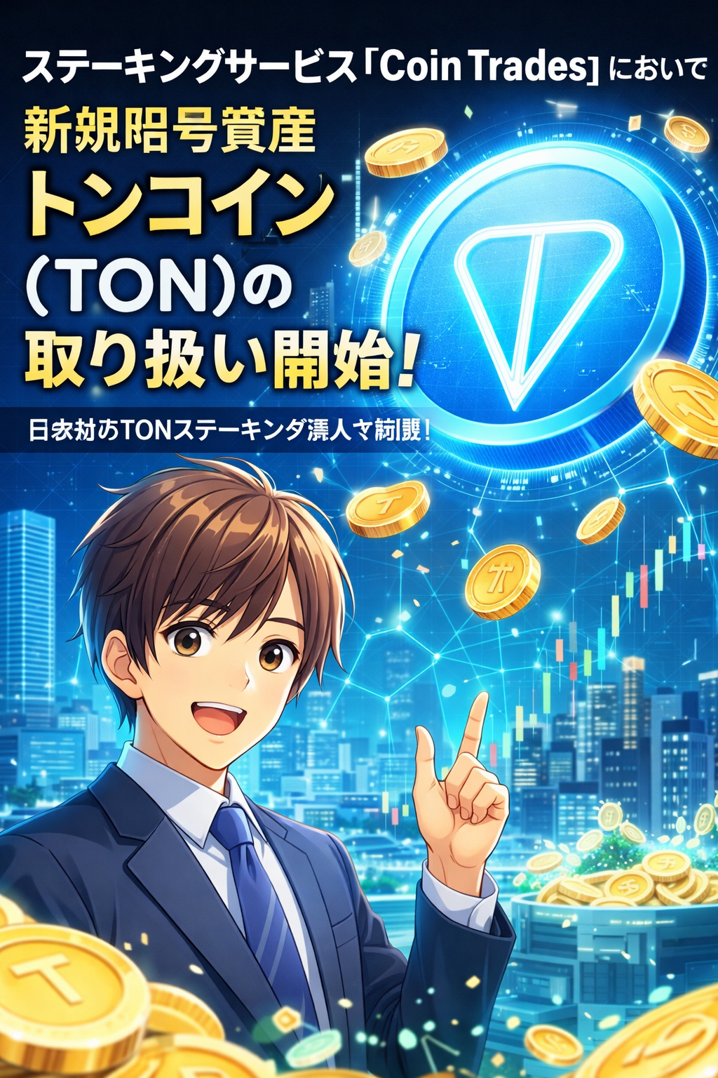 ステーキングサービス「Coin Trades」において、注目の暗号資産トンコイン(TON)の取り扱いが2026年1月21日からスタートしました。