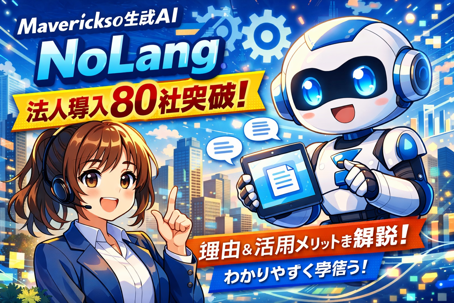 Mavericksが開発・提供する生成AI「NoLang」法人導入数が80社を突破した背景や特徴について詳しく解説します。